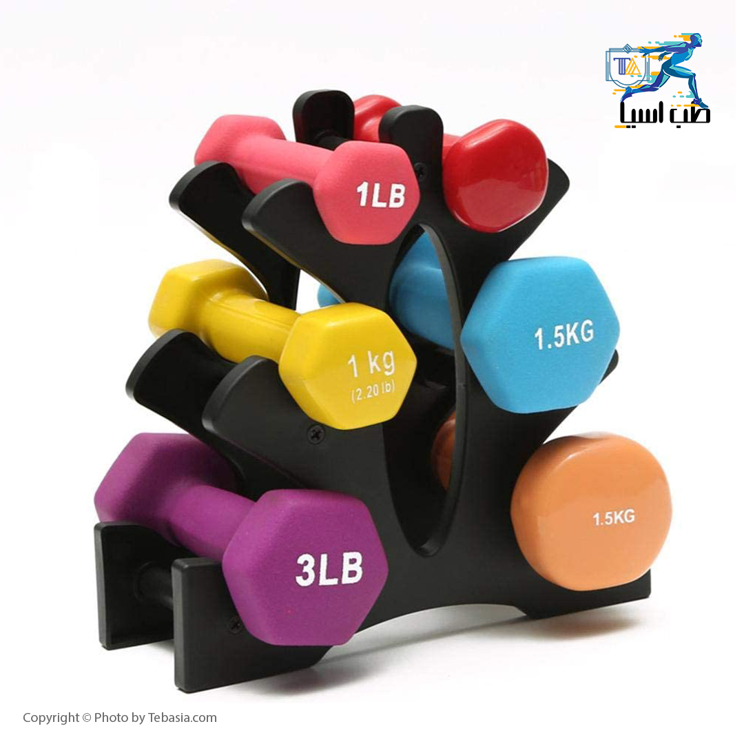 این وسیله در مجموع شش طبقه یا ردیف دارد که دو طبقه بالایی ویژه دمبل های سبک، دو طبقه میانی برای دمبل های متوسط و طبقات پایینی مخصوص دمبل های سنگین وزن است. همچنین پایههای رک دمبل ایروبیک طوری طراحی شده تا تعادل لازم را داشته باشد و گذاشتن وزنهها روی آن، موجب واژگونی یا چپ شدن آن نشود.